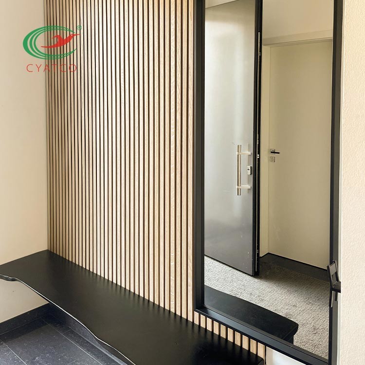 Este produto é um painel decorativo belamente projetado da parede e de teto da tira de madeira que se vanglorie das propriedades acústicas de alta qualidade. Os painéis podem facilmente ser aplicados às paredes e os tetos, sejam ele para o uso doméstico ou comercial.